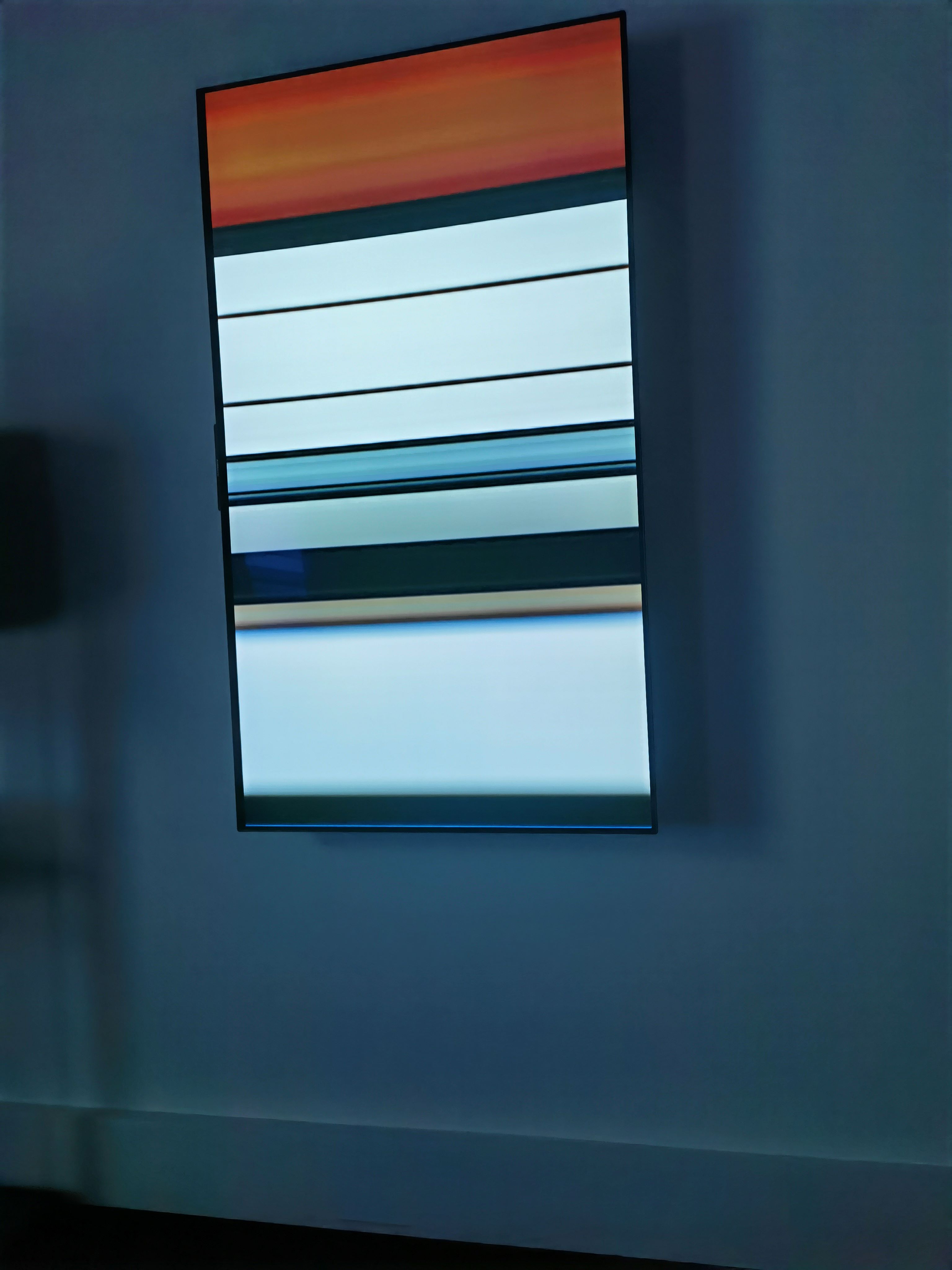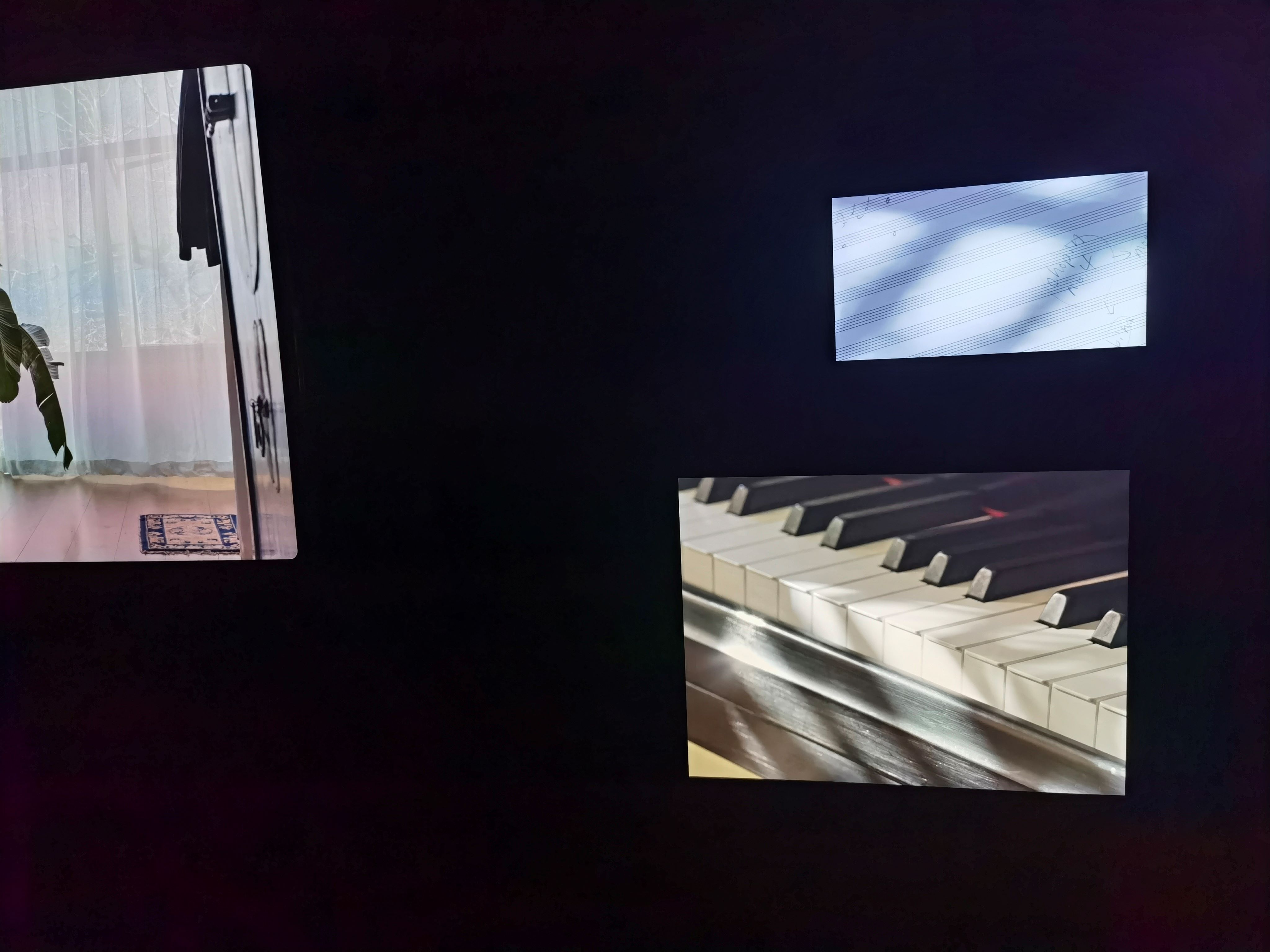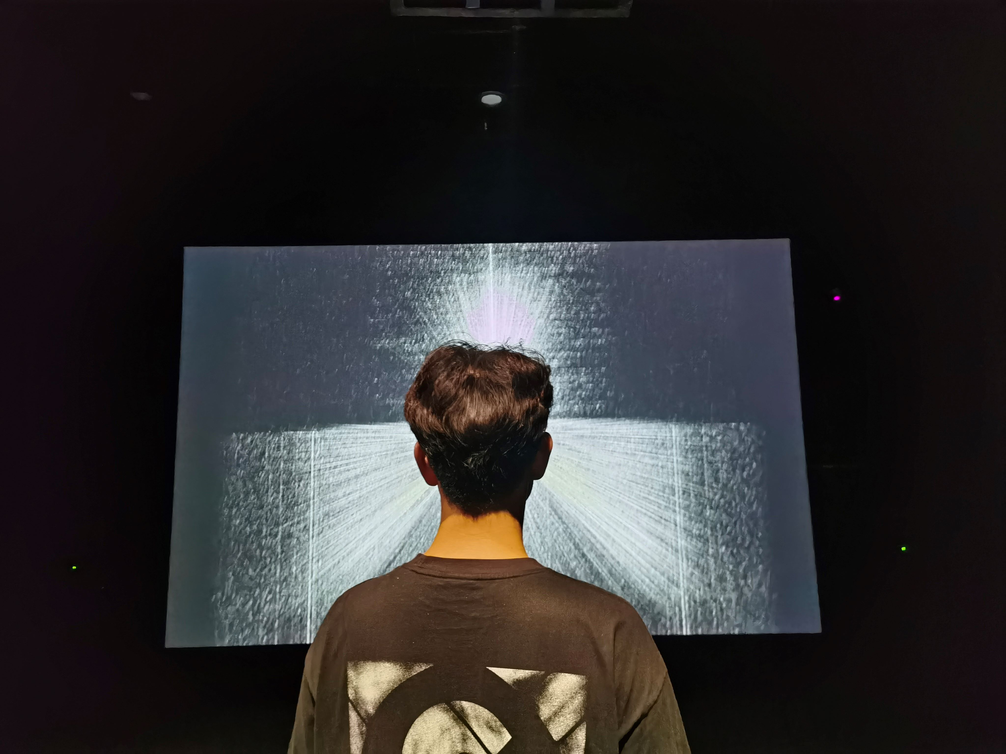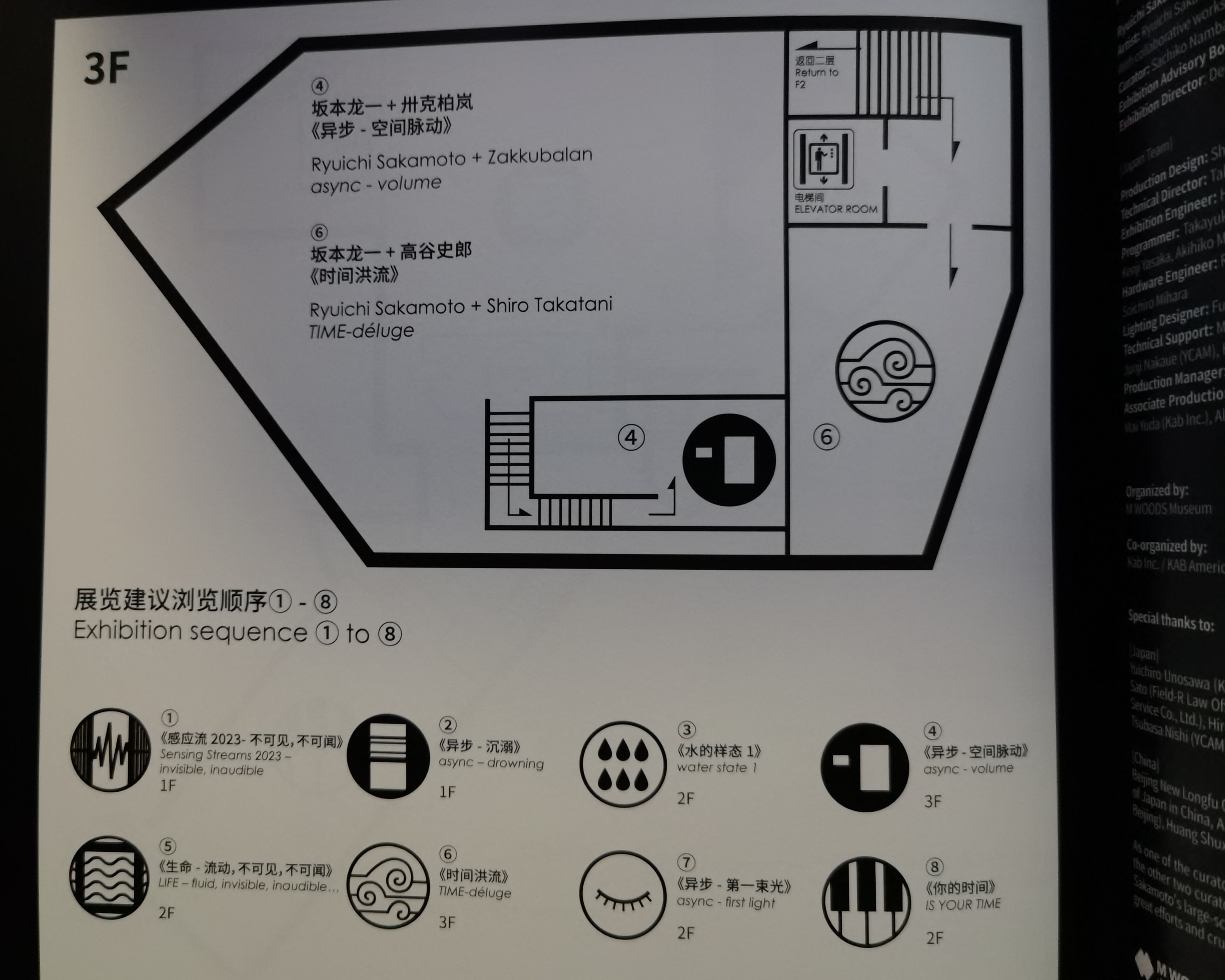 较小的设备屏幕使得观众须靠近观看,因而无法一次看到所有的图像,只能分别窥视每一扇”窗户”。当人们走近一扇”窗”时,从中传出的声音逐渐凸显,而声音场域内的其它因素则被弱化。不同的观展路径使得观众与展厅内的声音场域形成了独特的动态交互,营造出私密的个人化视听体验。透过这些通往各自小世界的窗口,观者得以由内到外地了解坂本龍一的心灵世界,为其带来仿佛身处胎中的感官体验。