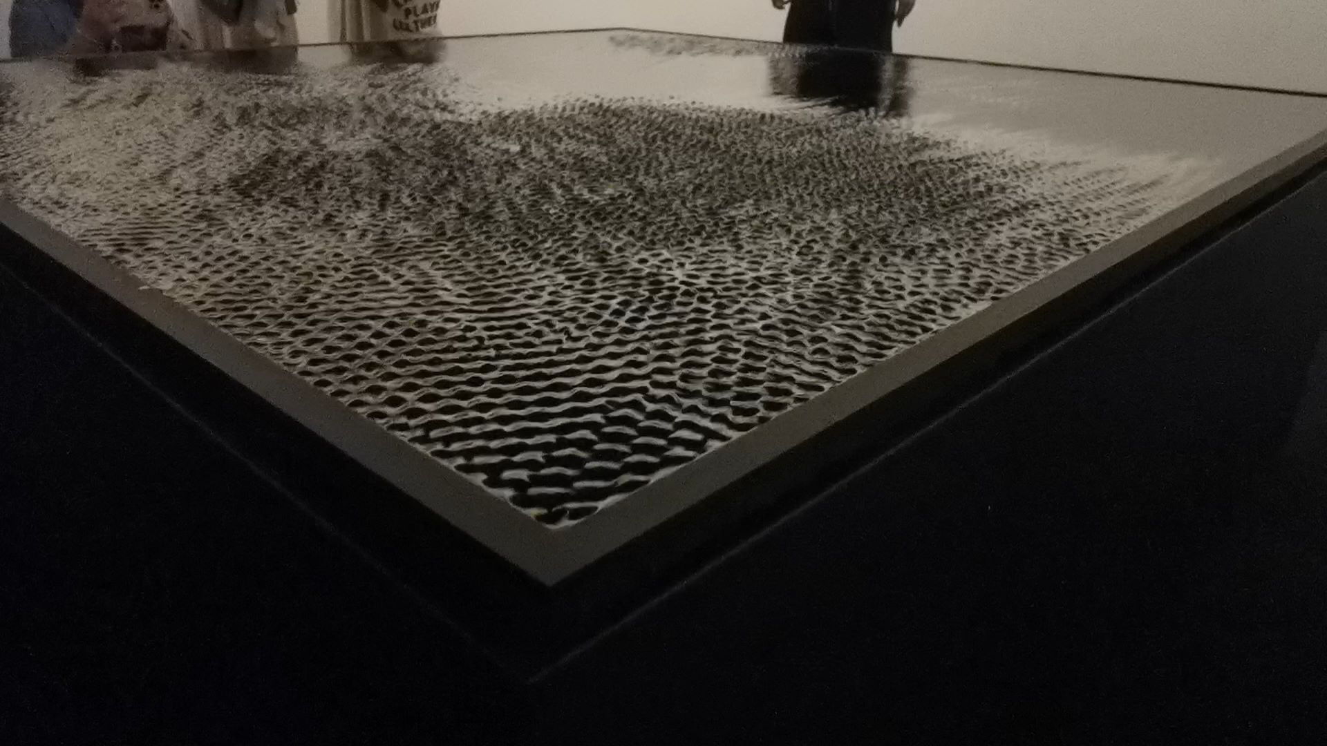 水面上的波纹时而像从空中俯瞰的海面,时而又像雨滴形成的水汪,呈现出多种引人联想的表达。在这冥想花园般的空间里,观众可以在不断回忆过往的过程中开启对自然环境的意识与思考。