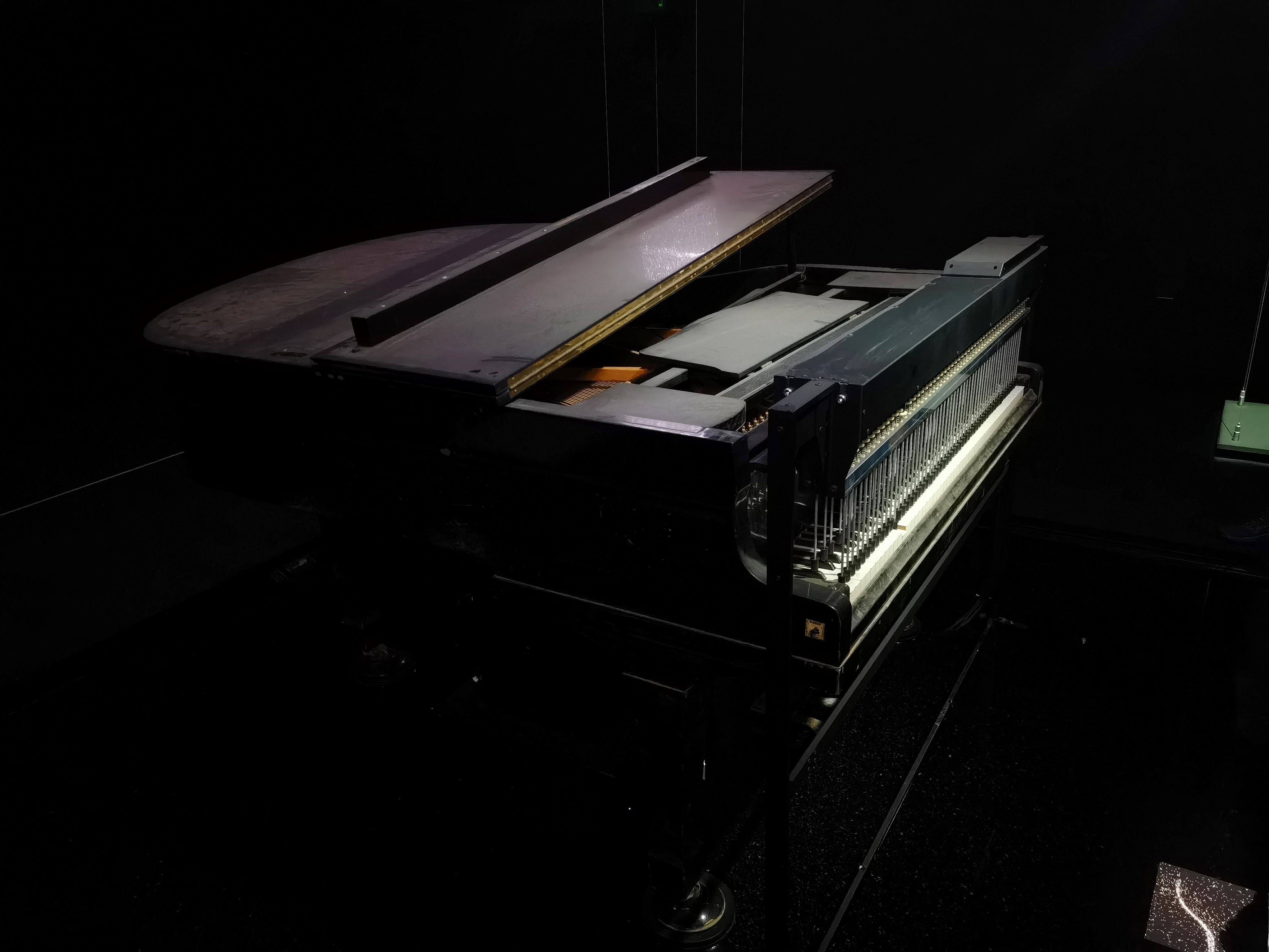 在成都呈现的版本将钢琴置于一汪池水之中。 LED 面板悬于钢琴上方,播放着雪花从天空中悄然飘落的画面。这架钢琴经过大自然的洗礼已失去了它原有的功能和角色,不再是需要人们用手弹奏的乐器。它已然回归单纯的物件,”转世”成为人们感知地球鸣动的载体。