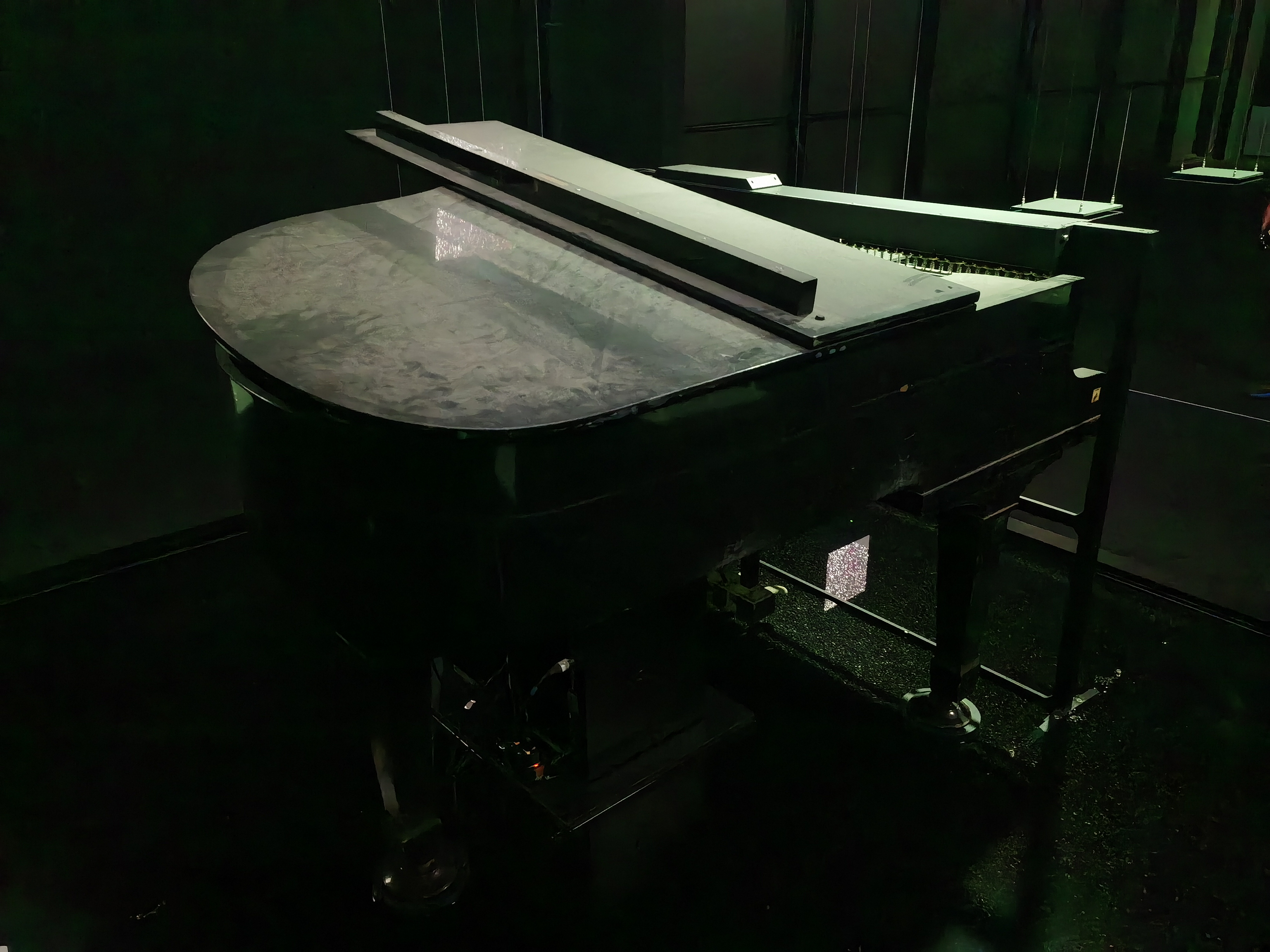屏蔽外界声音,穿过”无声长廊”,展厅内的钢琴映入眼帘。那是日本宫城县农业高中的钢琴,它经历了2011年东日本大地震海啸的冲击。坂本龍一称其为”大自然调试的钢琴”,并将它化为了一件艺术作品。